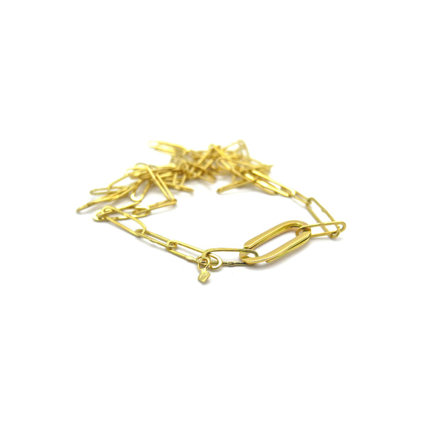 Zarte, elegante Goldkette aus handgeschmiedeten Goldelementen. Der individuelle Verschluss wurde in unserem Atelier speziell für diese Kette angefertigt und passt sich an das Design der Goldkette an.