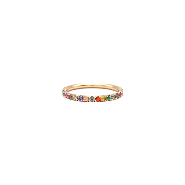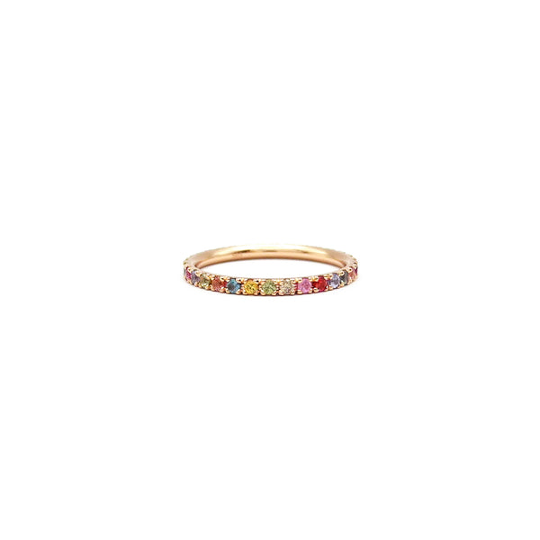 Diesen Memoryring in schönen Pastelltönen haben wir aus 585-Rotgold angefertigt. In Abständen sind Edelsteine in etwas kräftigeren Farbtönen gesetzt. Den Ring fertigen wir passgenau in Ihrer Ringgröße an, bitte nehmen Sie mit uns Kontakt auf, falls Ihre Ringgröße nicht gelistet ist.