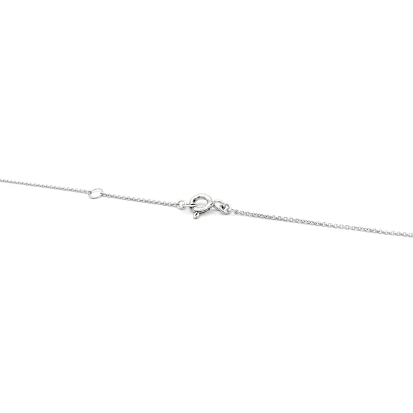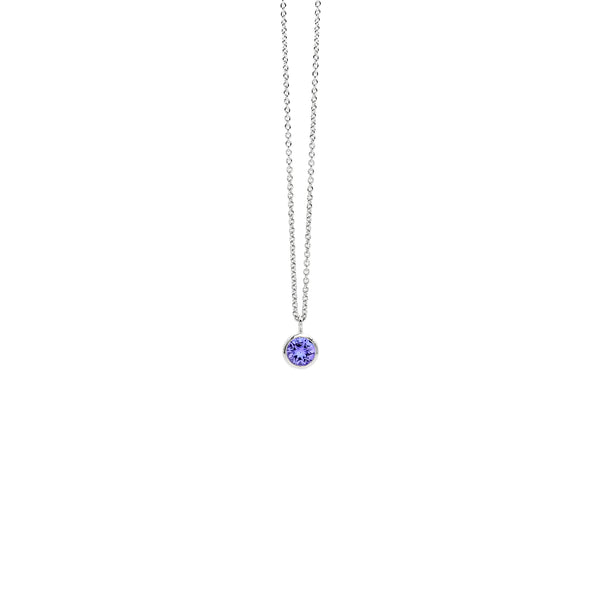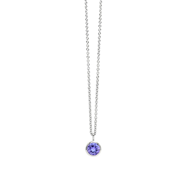 Schlicht-dezente und edle Kette aus 750-Weißgold mit einem sehr schönen und strahlenden facettierten Tansanit. Die Weißgoldkette ist in zwei Längen tragbar.